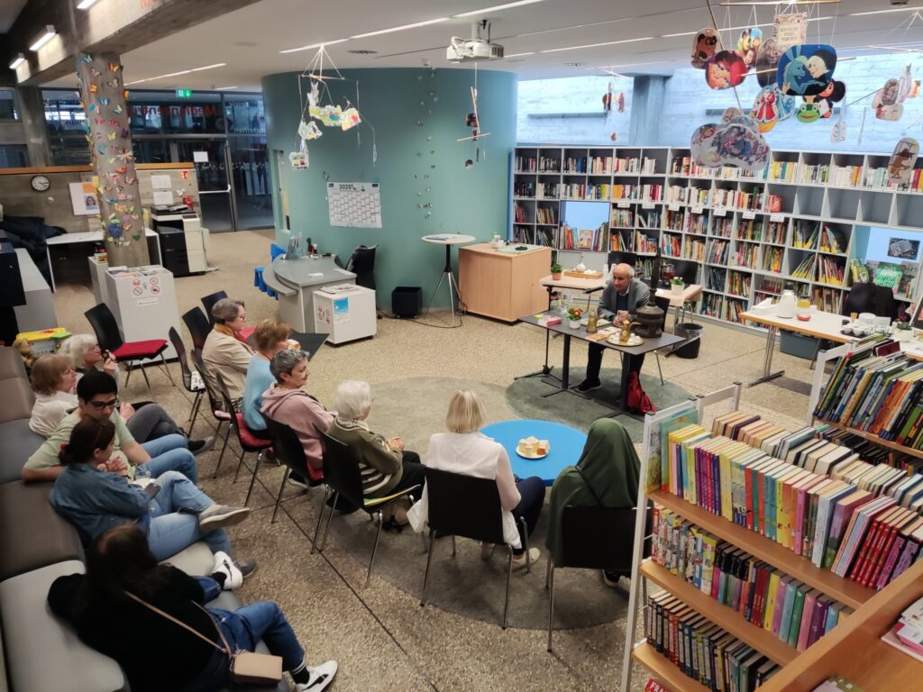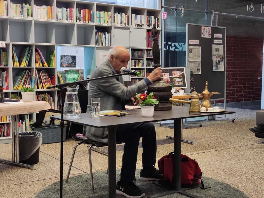 Das Café International bot ebenfalls einen Rahmen für kulturellen Austausch. Chinesischer Tee, japanischer Matcha, eritreischer Kaffee und pakistanischer Chai – Spezialitäten aus verschiedenen Regionen luden zum Probieren und zu Gesprächen ein. Ehrenamtliche aus dem Stadtteil und verschiedene Vereine stellten ihre Teetraditionen vor. Ein besonderes Highlight war die Erzählung von Salim Alafenisch über die Kaffeekultur der Beduinen. Die Veranstaltung zeichnete sich durch eine offene und kommunikative Atmosphäre aus. Hier gilt ein Dank allen Beteiligten, sowie dem Kulturkreis Emmertsgrund-Boxberg für die Kooperation.