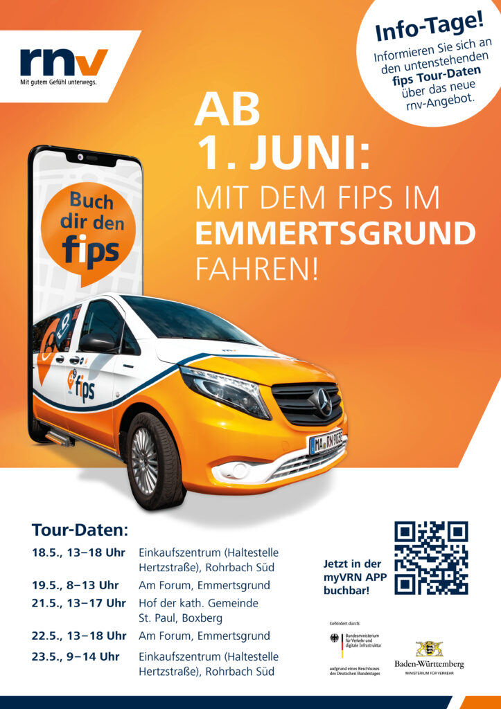 Im Vorfeld haben Bürgerinnen und Bürger die Gelegenheit, sich umfassend über das neue Angebot zu informieren. Vertreter der Rhein-Neckar-Verkehr GmbH stehen bei mehreren Terminen vor Ort für Fragen zur Verfügung. Dabei geht es nicht nur um die Funktionsweise des fips-Busses selbst, sondern auch um die Nutzung der zugehörigen App. Außerdem besteht die Möglichkeit, ein Fahrzeug direkt anzuschauen und sich einen persönlichen Eindruck zu verschaffen.