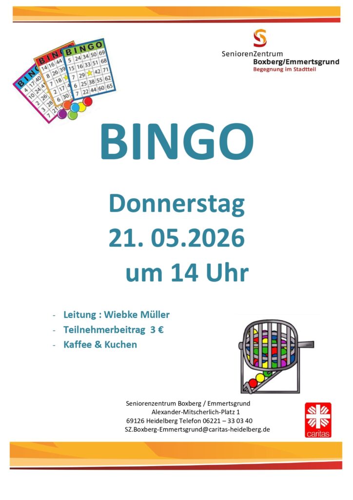 Donnerstag, 21. Mai, 14 Uhr, BINGO