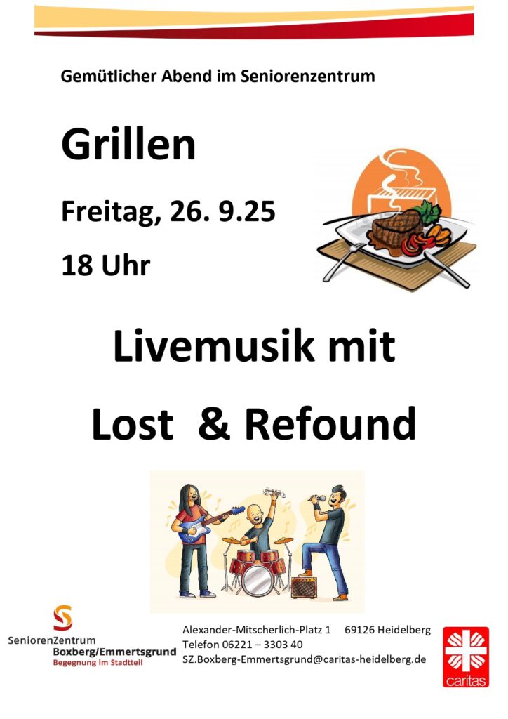 Freitag, 26. September, 18 Uhr Grillen mit Live-Musik von Lost & Refound