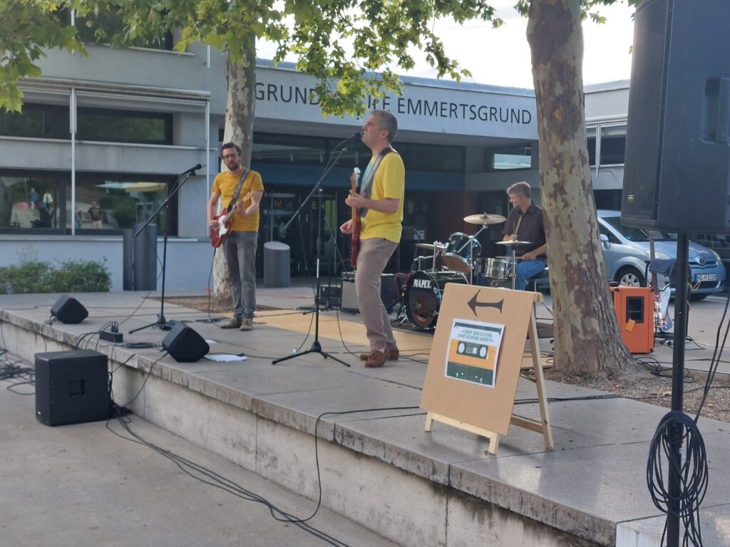 Nachdem im Juli der Auftritt abgesagt werden musste holte die Band mit dem lustigen Namen „Darf der Kleine eine Scheibe Wurst“ ihren Auftritt in der letzten Kultursommer-Woche nach. Mit ihrem Mix aus Rock, Country und Soul erzählten sie vom Alltag und gewannen im Emmertsgrund neue Fans. Passend dazu gab es Wurstbrötchen vom HeidelBERG-Café.